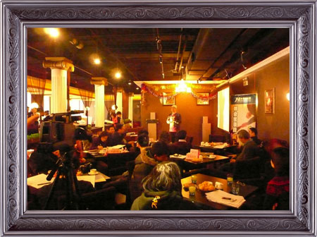 各媒體在塞納左岸咖啡卡座區(qū)做分組研討