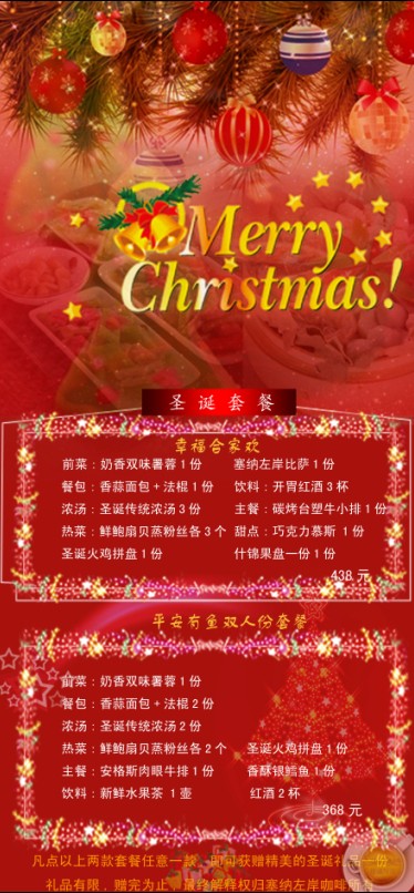 塞納左岸咖啡攜豐盛美味的圣誕大餐將挑戰您的味蕾,為配合主題,今年塞納左岸為您推出家庭套餐,兩人世界、三口之家均有不同選擇,享受圣誕饕鬄盛宴,塞納左岸咖啡之約不容錯過。